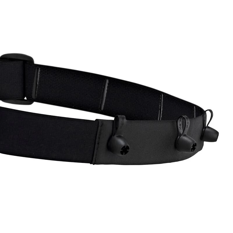 La ceinture porte dossard se porte sur les hanches pour une bonne stabilité. En matière élastique, vous pouvez l’ajuster à votre convenance. Attention à ne pas trop la serrer au risque qu’elle remonte.