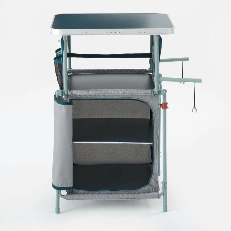 Nos concepteurs campeurs ont conçu ce meuble de rangement pour organiser et mettre à l’abri vos affaires. Il vous permet également de cuisiner en extérieur.Notre motivation ? Vous faciliter le rangement en camping. Ce meuble vous permet de ranger votre nourriture et affaires à l’abri et de cuisiner si besoin.