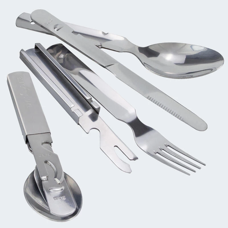 · 4 pièces de couverts par set: fourchette, couteau, cuillère, ouvre-bouteille & ouvre-boîte